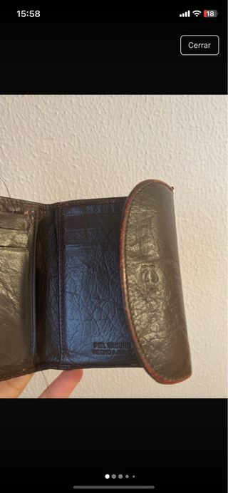 Cartera de piel genuina, elaborada a mano con gran detalle. Se encuentra en buen estado. - Material: Piel de vacuno. - Fabricación artesanal.