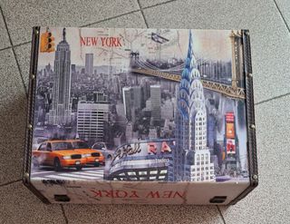 Maleta de estilo vintage con diseño inspirado en Nueva York. Perfecta para añadir un toque retro a tus viajes o como elemento decorativo. - Diseño con mapa de Nueva York. - Interior forrado en tela negra. - Cierre de seguridad metálico.