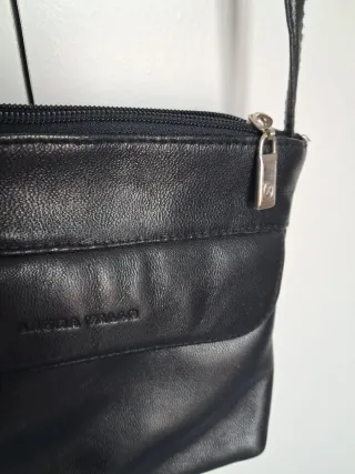 Bolso de piel antiguo (más de 20 años), usado un par de veces, en perfecto estado, sin ningún roce, desgaste o mancha. La bolsa mide 28x25 cm y la cinta es ajustable. La tapa lleva cierre con imán. Dos compartimentos interiores y un bolsillo posterior con cremallera. Se incluye funda para guardar original.