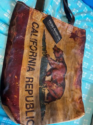 Bolso de alta calidad hecho a mano, comprado en California, con diseño inspirado en la bandera de California. Marca: Vintage Addiction Podéis ver más modelos en su web.