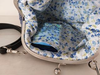 Bolso de estilo vintage con un bonito diseño de tapicería. - Cierre de boquilla metálico. - Asa de mano y cadena. - Diseño geométrico con motivos florales.