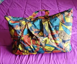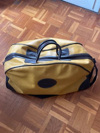 Gran bolsa de deporte vintage de la marca Mito. Perfecta para viajes o actividades deportivas. - Diseño llamativo en amarillo y multicolor. - Compartimento principal espacioso. - Asas resistentes para un transporte cómodo.