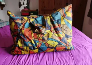 Bolso con un diseño abstracto y vibrante. Ideal para añadir un toque de color a tu día a día. - Mariscal - Estampado geométrico. - Asas resistentes. - Cierre de cremallera.