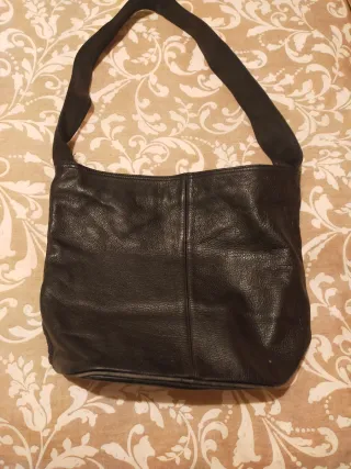 Bolso de piel con un diseño elegante y práctico. Años 80/90. - Piel genuina, con una ligera textura que lo hace original. - Gran capacidad, con bolsillo interior y cierres en cremallera. - Asa de anchura cómoda para llevar al hombro o en bandolera.