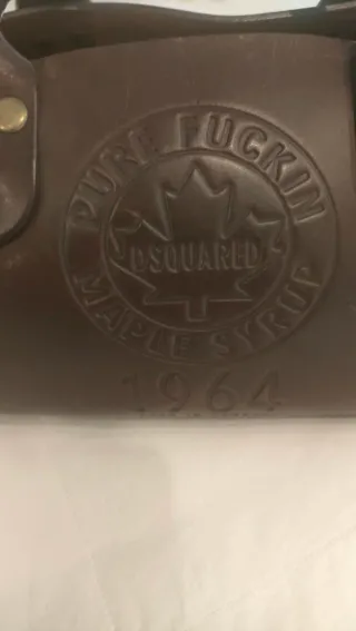 Bolsa de piel con el escudo del FC Barcelona. - Diseño vintage. - Color marrón.
