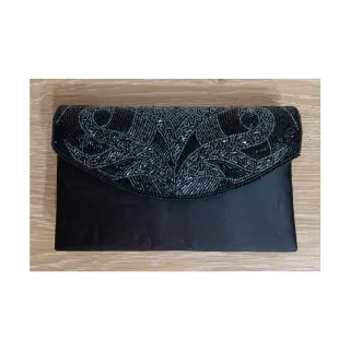 Elegante bolso de mano con un diseño de pedrería en la solapa. - Vintage, años 80s. - Cierre imantado. - Bolsillo interior. - Base lisa en color negro. - Correa extraíble. - Ideal para eventos y ocasiones especiales. - Defectos por uso en fotos 4 y 5 Medidas: 22*13'5*4 cm (largo*alto*profundidad)