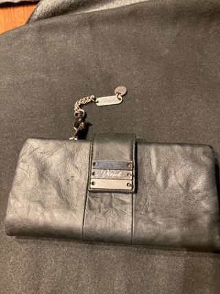 Cartera vintage larga de cuero negro de la marca Vintage Diesel Black Leather Wallet Size: 17x10 cm Un accesorio clásico y elegante. - Medidas: 17x10 cm. - Cierre con broche metálico.