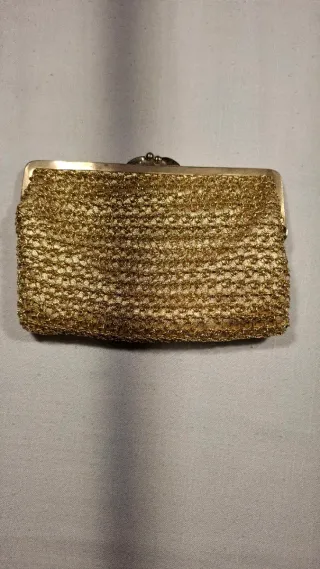 Elegante bolso de mano vintage 50’s 60’s con un diseño metalizado que combina tonos dorados y plateados. Su textura tejida le da un toque sofisticado. - Diseño tejido. - Acabado metalizado.