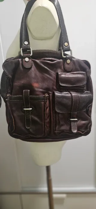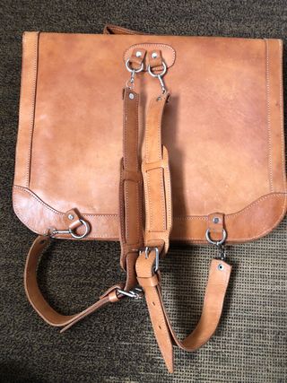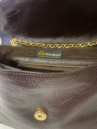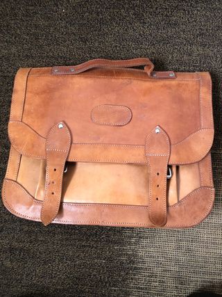 Bolso de cuero estilo cartera, con un diseño vintage y un acabado artesanal. Comprada en 1985 nunca se ha usado - Material: Cuero genuino. - Cierre con hebillas. - Asa superior. - Compartimento frontal.