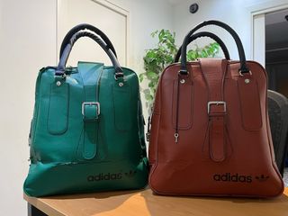 Dos bolsas vintage de Adidas, una en color marrón y otra en verde. Perfectas para viajes o como bolso de mano. - Diseño clásico. - Cierre con hebilla. - Asas resistentes. - Medidas en las fotos - Precio por cada uno
