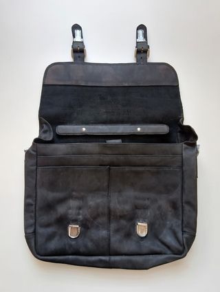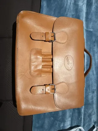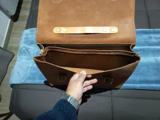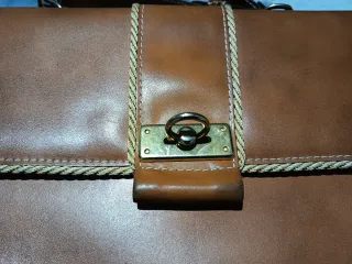 Elegante cartera vintage de cuero, ideal para llevar documentos. - Diseño clásico y atemporal. - Compartimentos interiores organizados. - Cierre con hebillas de seguridad. - Asa lateral para un transporte cómodo.