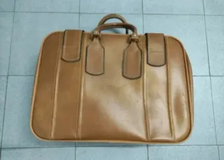 Maleta vintage de cuero. - Color marrón. - Diseño clásico.