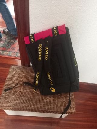 Elegante bolso Loewe de estilo vintage, perfecto para llevar documentos o como cartera. - Combinación de piel en negro y detalles en beige. - Asa superior de piel. - Cierre metálico central. - Tiene un pequeño desconchón en una esquina (ver fotos), el resto está muy bien. Entrega en mano o envío por Wallapop. Precio negociable con sentido. Si quieres medidas exactas o fotos detalladas, te las envío sin problema.