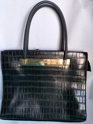Bolso de mano con un diseño clásico y atemporal. - Cierre de solapa con broche metálico. - Bolsillo frontal. - Asas de mano. - Detalles metálicos dorados. Se puede utilizar en su tamaño grande o mas pequeño. Cuenta con correa para llevarlo colgado también. Esta en perfecto estado, únicamente cuenta con una pequeña marca de desgaste que se observa en la foto. Precio negociable!📩