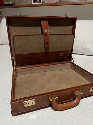 Elegante maletín vintage de la marca Loewe. Se encuentra en excelentes condiciones y luce impecable. - Piel marrón de gran calidad. - Herrajes dorados. - Diseño clásico y atemporal. - Ideal para oficina o viajes.
