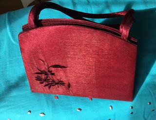 Bolso de mano vintage con un diseño vibrante y detallado. Con cremallera interior. En perfecto estado, sin usar. Medidas 31x23cm - Bordado intrincado con hilos de colores. - Adornos de espejos pequeños. - Asa de cuentas rojas.