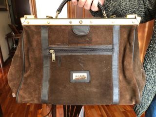 Bolso de mano vintage con un diseño elegante y moderno pero superretro - Material exterior de ante. - Detalles en material brillante. - Correa para llevar al hombro. -De buenísima calidad, porque es de los años 70 y no tiene nada roto. Solo algunos cambios de color en la piel porque tiene bastante uso. -Muy mono si eres fan de lo vintage. Y con un poco de puesta a punto, quedará fantástico.