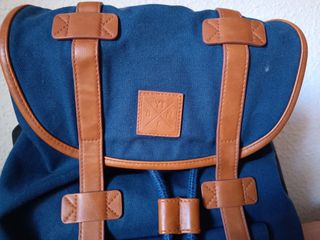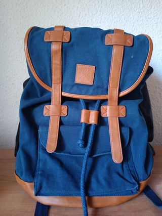 Mochila vintage marca Your Turn. Azul marino con detalles color marrón. Nueva, sin uso. Conserva etiquetas originales.