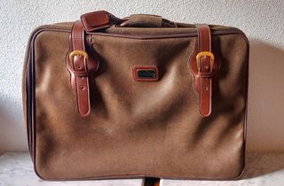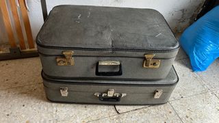 Vendo juego de dos maletas antiguas de la prestigiosa firma de Segovia MALETAS KARMAR. Son de color marrón y tienen un diseño clásico y elegante. Son maletas de calidad hechas para durar - Piel sintética con textura. - Asas superiores y laterales. - Cierre de cremallera. - Bolsillo frontal con cremallera.