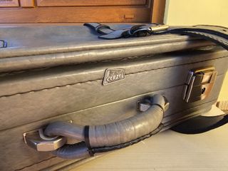 Maleta clásica de la marca Corzo, con un diseño atemporal. No tengo las llaves. Medidas 60x40x20cm - Acabado en color gris. - Cierre con hebillas y correas. - Asa de mano. - Estilo retro.