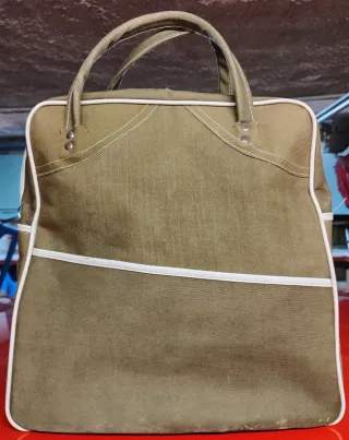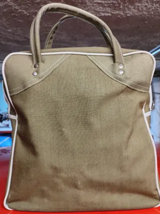 Bolso de estilo vintage con un diseño clásico y atemporal. Su color verde oliva le da un toque único. - Ribete blanco en contraste. - Asas reforzadas. - Costuras decorativas.