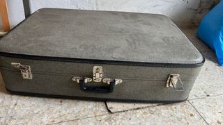 Preciosa maleta antigua de la marca Malera. Es de color gris oscuro y tiene un diseño clásico. Se encuentra en buen estado, aunque muestra señales normales de uso. - Asa de mano resistente. - Cierres metálicos. - Material duradero.