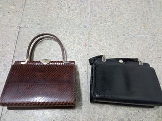 2 bolsos vintage de cocodrilo de hace 50 años. El marrón en buen uso, el negro más usado