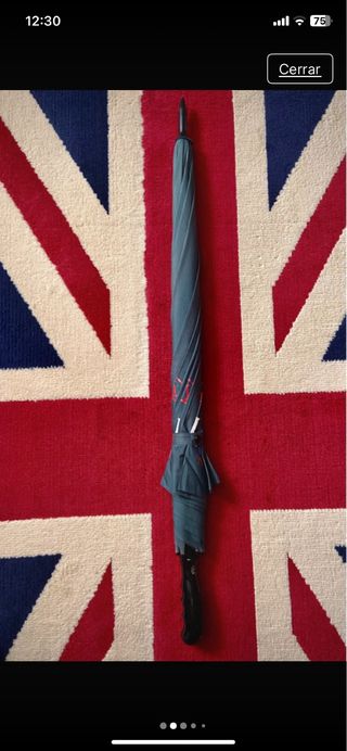 Paraguas original del Jaguar Racing Team. Exclusividad y funcionalidad, un auténtico artículo vintage en excelente estado de conservación. Ideal para los coleccionistas o amantes del automovilismo que valoran los detalles con historia. ✅Diseño: Elegante y deportivo, perfecto para destacar en días de lluvia o para llevar en la bolsa de golf. 📏Medidas: •Largo..............100 cm, •Diámetro........133 cm (gran cobertura). Un accesorio exclusivo que combina prestigio y elegancia. ¡ Hazte con este paraguas de colección antes de que sea tarde!