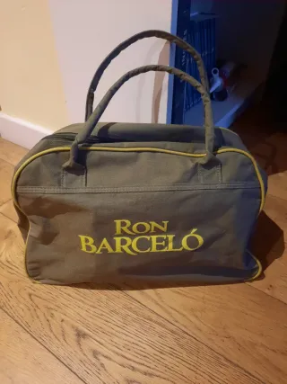 Bolsa de estilo vintage con el logo de Ron Barceló, bolso viaje retro de lona muy buen estado - Color verde oliva. - Asa de tela. - Ribete amarillo.