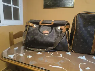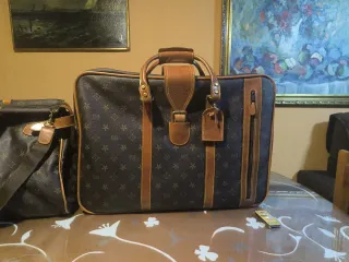 Conjunto de maletas de viaje de estilo vintage, con un diseño clásico y elegante. - Materiales de cuero en contraste. - Acabados de alta calidad. - Ideal para coleccionistas o amantes del estilo retro.