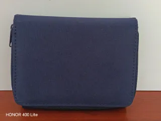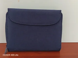 Con varios compartimentos, billetera, tarjetero, monedero, etc. De poliéster reciclado. Mide 15x11x2 cm Cartera de estilo vintage en color azul. - Cierre de cremallera. - Diseño compacto.