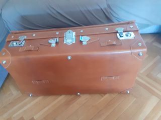Maleta clásica de estilo vintage, perfecta para añadir un toque retro a tus viajes o como elemento decorativo. - Material exterior de cuero. - Diseño espacioso y robusto. - Asas y cierres resistentes. Medidas :70×48 Tiene rudas pero le falta una