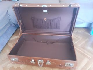 Color burdeos. Piel sintética. Sin ruedas. Con asas y cierre de hebillas y cremallera. Peso: 4,5Kg. Medidas: 74x18x50cm. Precio no negociable.