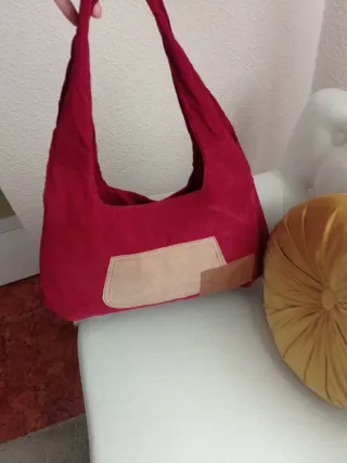Bolso de hombro de pana con un diseño vintage. - Color principal granate. - Detalles en color beige. - Acabado suave.