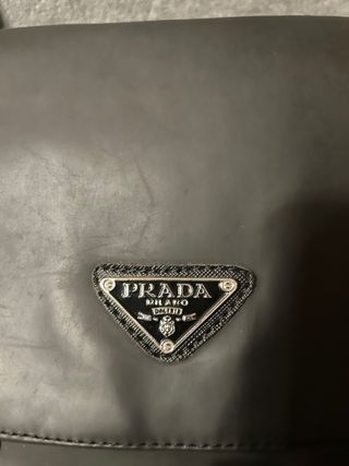 Riñonera vintage de la marca Prada. Un accesorio clásico y elegante. Ligera descamacion en la esquina derecha por los años - Correa ajustable con logo. - Cierre de solapa con broches. - Detalle de logo triangular metálico.