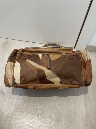 Bolso de mano de piel con diseño patchwork. Medidas 49 largo y 29 alto. Apenas se ha usado,bien conservado,algún pequeño desgaste pero mínimo. - Material: Piel. - Estilo: Vintage. - Cierre: Cremallera. - Múltiples bolsillos exteriores con cremallera y cibta para el hombro.