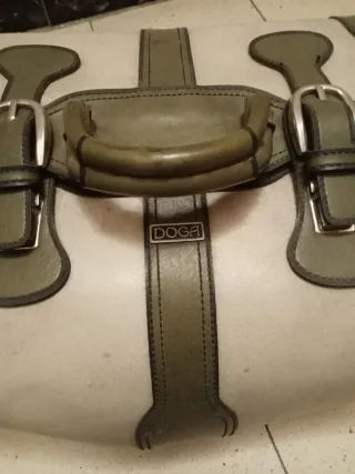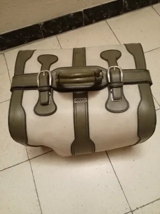36CMX30CM. Bolso vintage de la marca DOGA. - Diseño clásico en tonos beige y verde oliva. - Asa superior para llevar en mano. - Cierre con hebillas metálicas.