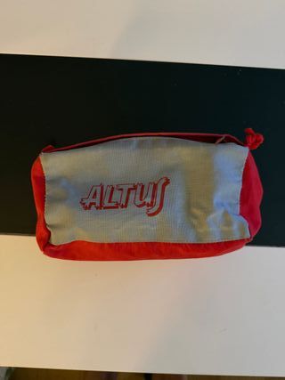Neceser vintage de la marca Altus, con un diseño práctico y espacioso. - Color rojo y beige. - Cierre de cremallera.