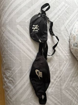 Lote de dos riñoneras, una con el logo de New York Yankees y otra con el logo de Nike. Ambas son de color negro. Las dos 25€ sueltas 15€ - Riñonera New York Yankees. - Riñonera Nike.