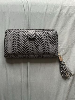 Elegante cartera de mujer con un diseño texturizado. - Acabado con detalle de escamas. - Cremallera completa. - Adorno de borla. - Logo de la marca visible.