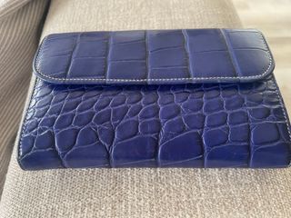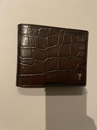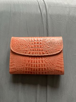Monedero de piel con un diseño texturizado. - Cierre de solapa con detalle metálico. - Acabado imitación piel de cocodrilo. Nuevo, sin usar