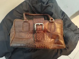 Bolso de hombro de piel en color marrón. - Diseño elegante con detalles metálicos. - Costuras decorativas. - Asas cómodas para llevar al hombro. Precio negociable.