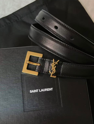 Cinturón clásico y fácil de combinar. Incluye caja y bolsa guardapolvo. La talla 85 cm no me queda como esperaba, por eso lo vendo. Está en muy buen estado. - Hebilla dorada. - Detalle del logo YSL en dorado.