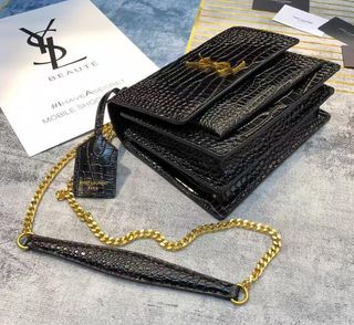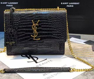 Bolso YSL Piel Cocodrilo Negro Dorado