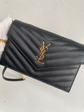 Elegante bolso Ysl - Color negro con detalles dorados. Cadena Regalo caja