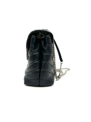 Bolso Saint Laurent LouLou mediano en piel negra acolchada, con icónico logo YSL en metal y cadena plateada ajustable. Diseño elegante y moderno, ideal para el día o la noche. Interior con compartimentos y forro de tela. Este bolso Saint Laurent de segunda mano está en excelente estado, 100% original. Medidas: 23x18x9 cm. Una pieza imprescindible del lujo parisino. Ref. BCN 0529 – lujo auténtico desde Barcelona.