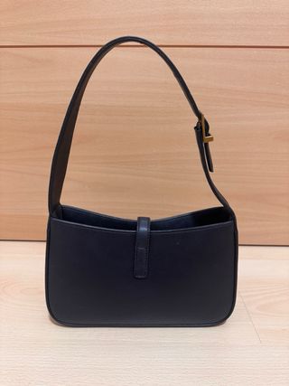 YSL 5 a 7 shoulder bag ( bolsa negra YSL) Tamaño: 23 x 16 x 6,5 cm Muy buen estado Cuero negro Herrajes dorados Forro de ante Un bolsillo interior con cremallera Incluye funda protectora size 23 x 16 x 6,5 cm very good condition black leather gold tone hardware suede lining single interior zip pocket coming with a dust bag