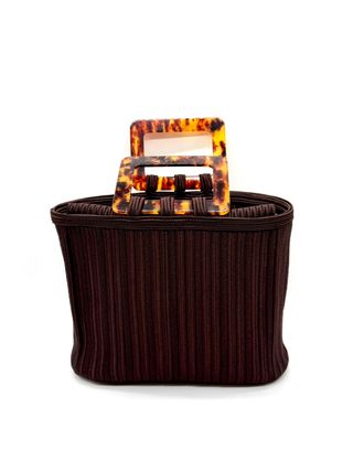 Bolso Yves Saint Laurent Rive Gauche de segunda mano confeccionado en algodón de seda marrón, una pieza icónica de la maison francesa. Este bolso Yves Saint Laurent Rive Gauche destaca por su diseño estructurado y asas efecto carey grabadas con el logotipo YSL. Elaborado en algodón de seda trenzado en relieve, aporta textura y carácter. Sus medidas son 21 x 27 x 10 cm, ideal para el día a día. El bolso se encuentra en excelente estado, con un pequeño descosido interior sin afectar su uso. Madrid 8363