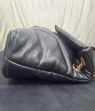 Elegante bolso de la marca Saint Laurent en color negro con detalles dorados.Este elegante bolso de Saint Laurent (YSL) destaca por sus icónicos herrajes dorados, que aportan lujo y sofisticación a cada pieza. La combinación de materiales de alta calidad con detalles dorados crea un brillo único y un impresionante efecto visual. Con su estructura clásica y diseño refinado, este bolso es el complemento perfecto para cualquier ocasión, ofreciendo tanto estilo como funcionalidad. - Diseño acolchado. - Cadena metálica dorada. - Cierre de botón a presión.
