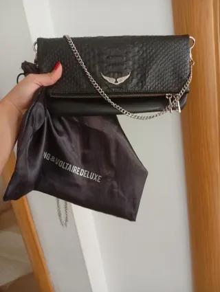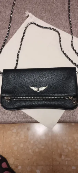 Bolso de mano Zadig & Voltaire. Usado pero en buen estado. - Diseño con solapa. - Adorno de alas plateadas. - Cremallera frontal. - Cadena metálica. - Original. - Le falta la tira corta, la perdí.